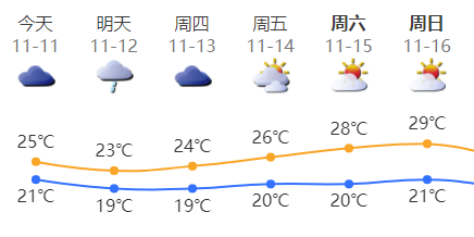 深圳今日多云间阴天,有分散小雨;气温21-25℃;北风4-5级,沿海、高地和海区阵风8级左右;相对湿度55%-85%。