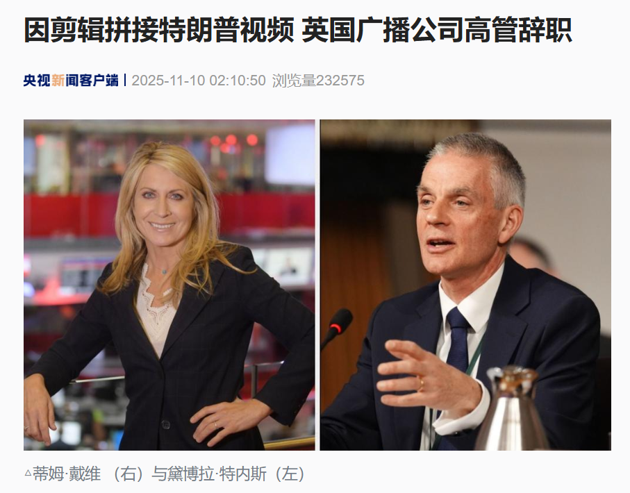● 因剪辑拼接特朗普视频,英国广播公司(BBC)两高管辞职。