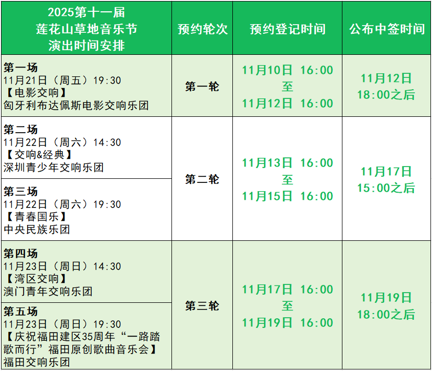 ● 福田:2025莲花山草地音乐节将于11月21日-23日再度奏响,上万张门票等你领。