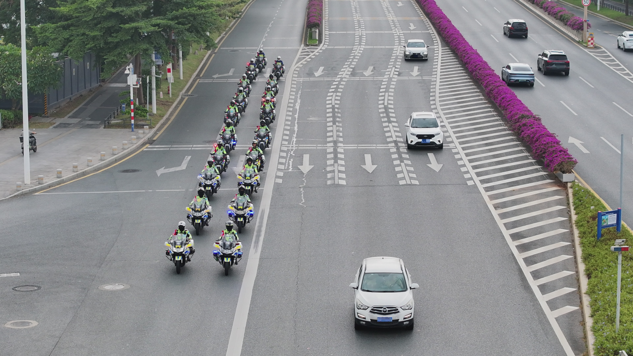 一道道荧光绿的身影在路上穿梭不息,共同编织起一张立体化、动态化的交通安全防控网。光明交警正以扎实的行动展现其护航十五运、力保路畅人安的坚定决心与强大执行力,为赛事的顺利举行贡献交警力量。