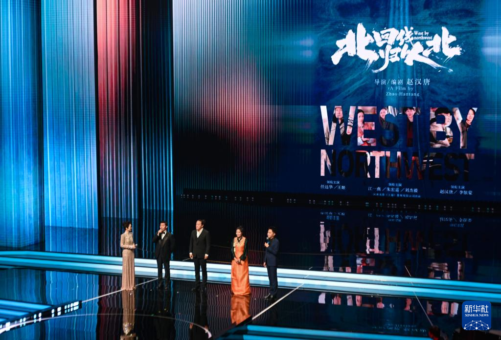 11月11日晚,新片新作《北回归线以北》主创人员在2025年中国金鸡百花电影节开幕式上进行推介。新华社记者 周义 摄