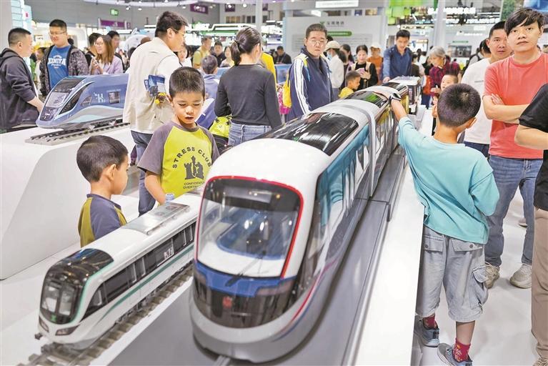 记者在现场看到,深圳地铁新质生产力展区展示了宇宙线缪子智能探测仪、飞行列检工作站、鸿蒙智慧车站、轨道车辆电驱机械制动系统等40余项轨道交通最新创新成果。