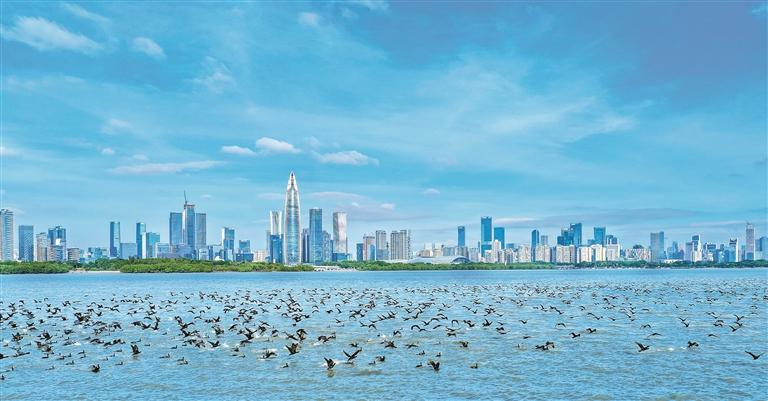 ● 日前,成群的鸬鹚飞临深圳湾,或游弋休憩,或展翅捕食,绘就一幅生机勃勃的冬日画卷。