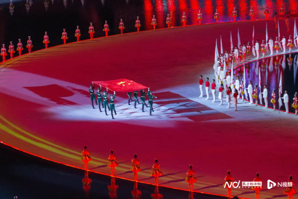 11月10日,中华人民共和国第十五届运动会开幕式在广东省广州市隆重举行。这是粤港澳三地首次携手承办全运会。苏炳添(广东)、张家朗(香港)、李祎(澳门)共同点燃赛事主火炬,体现三地协作精神。身着极具岭南风韵广绣服装的引导员,手持团扇造型的引导牌,引领本届全运会东道主广东、香港、澳门体育代表团入场。