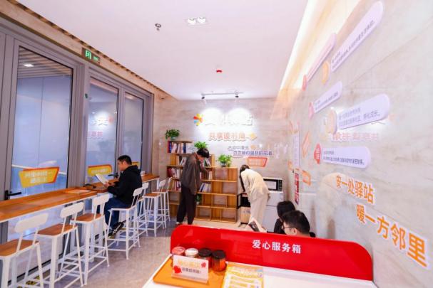 积极响应“完整社区”与“一刻钟便民生活圈”建设号召,景福安荟邻亦设立了“安邻驿站”与“安居生活坊”双便民空间。“安邻驿站”依托“8+N”服务体系,提供休憩、阅读、饮水、充电、餐食加热、应急药箱等贴心服务,为居民与户外工作者营造温馨便捷的休憩场所,切实践行“小事不出社区”理念。“安居生活坊”则以“5+N”便民业态组合为核心,整合干洗、修鞋、修表、缝补等基础服务,以及旅行社、家政等品质服务。两大空间协同发力,共同构建邻距离、有温度、有品质的邻里便民生活圈。