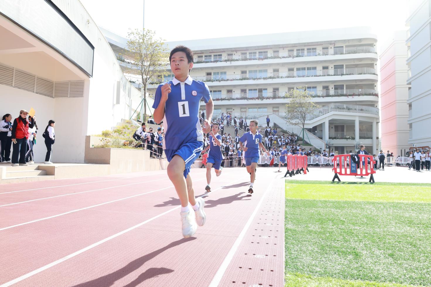 赛场之上,热血沸腾。家长队与老师队的接力跑率先点燃氛围,赢得全场欢呼;小学部小运动员们奋勇争先,初中部学子尽显青春锋芒,场下加油声此起彼伏,将赛事氛围推向高潮。校园足球班级联赛中,队员们在赛场上默契十足、协同作战,在攻防转换间尽显拼搏本色,一次次高速追逐、激烈拼抢点燃赛场氛围。