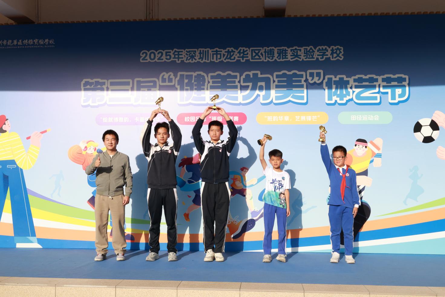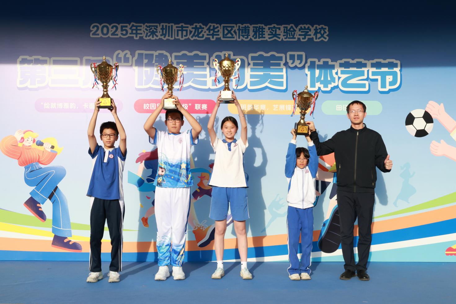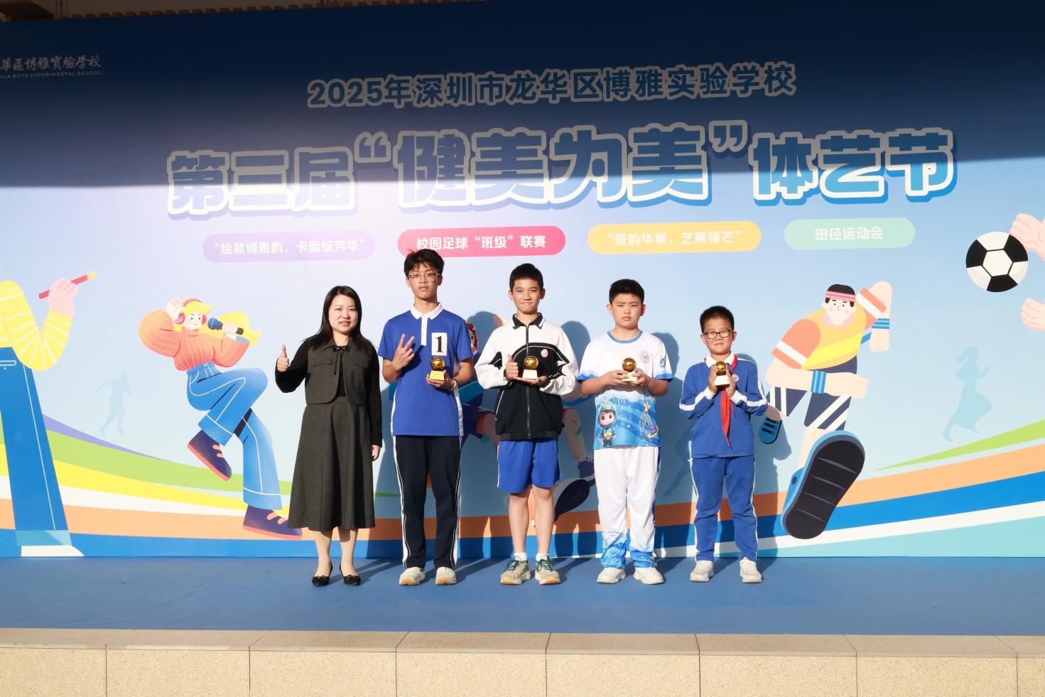 “健美为美”体艺节是博雅校园六大节日之一,本次活动的成功举办,不仅为孩子们提供了展示自己的平台,更体现了以体育竞技锤炼坚韧意志、塑造强健体魄之“健”,以艺术展演涵养高雅情趣、提升审美素养之“美”的核心内涵。博雅学子在运动赛场的拼搏、艺术创作的探索中收获成长,这份拼搏进取、团结协作的精神,正是“健美为美”理念的生动践行。它将持续激励孩子们带着体艺涵养的“健”与“美”,在未来的学习生活中不断超越自我、勇攀高峰。