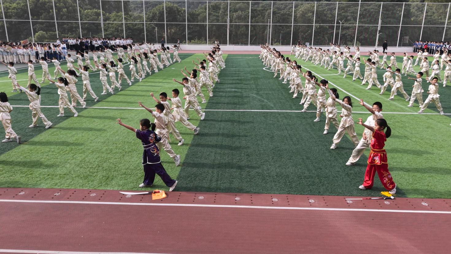 庄严的升旗仪式后,博雅实验学校副书记逯一营致辞,强调体育与艺术在美育教育中的重要作用,鼓励学子发扬体育精神,在竞技中成长、在比赛中绽放光彩。殷殷叮嘱后,运动员代表与裁判员代表庄严宣誓。伴着江细凤校长宣布启幕,民族特色操、传统武术、《最好舞台》等节目精彩上演,孩子们以整齐动作尽显青春活力。
