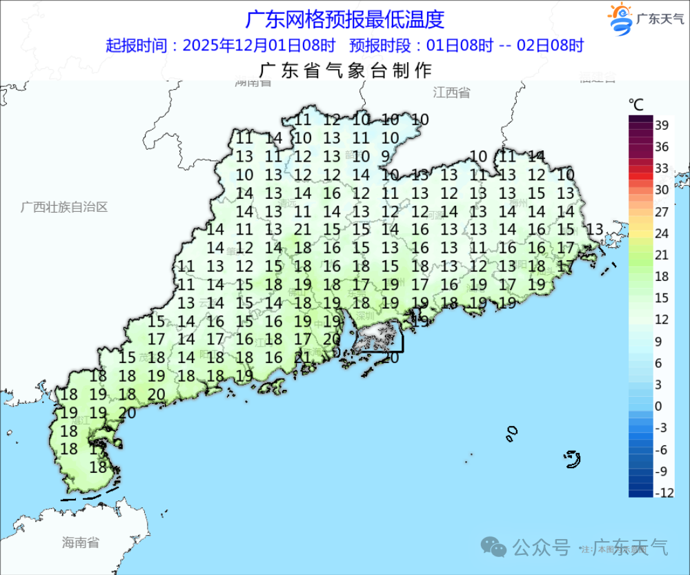 具体来看,12月1-2日白天,粤西和珠三角南部市县阴天间多云,有分散零星小雨,其余市县多云到阴天,局部有小雨。最低气温:粤北、珠三角北部和粤东北部市县11~16℃,南部沿海市县19~21℃,其余市县16~19℃。