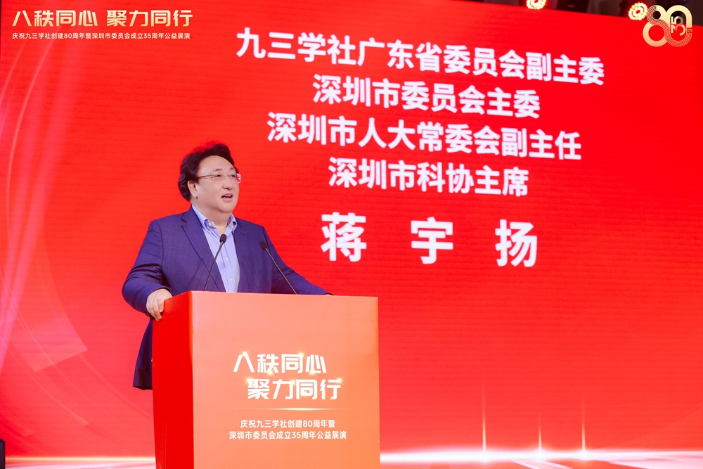 九三学社深圳市委会主委、深圳市人大常委会副主任蒋宇扬致辞。