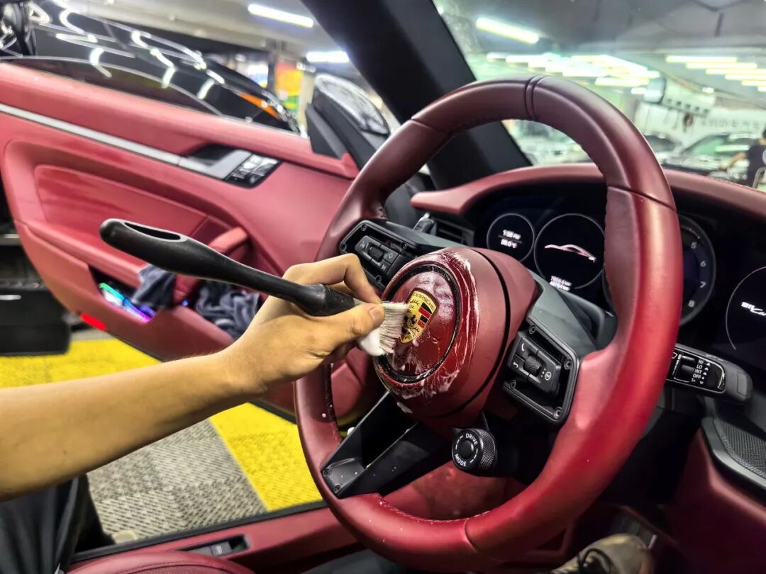 在这里,最基础的98元洗车需要90分钟,是普通洗车店的四倍时长。“这是我们的态度。”肖柳坦言洗车业务并不盈利,却是获取信任的关键。这种精细化作业,体现在每个环节。比如处理车内呕吐物、鱼腥味,外表的果子树叶等顽固污渍,以及长时间停放车辆的清洁,他们都会安排专人服务两三天,用专业设备和流程恢复车辆原状。