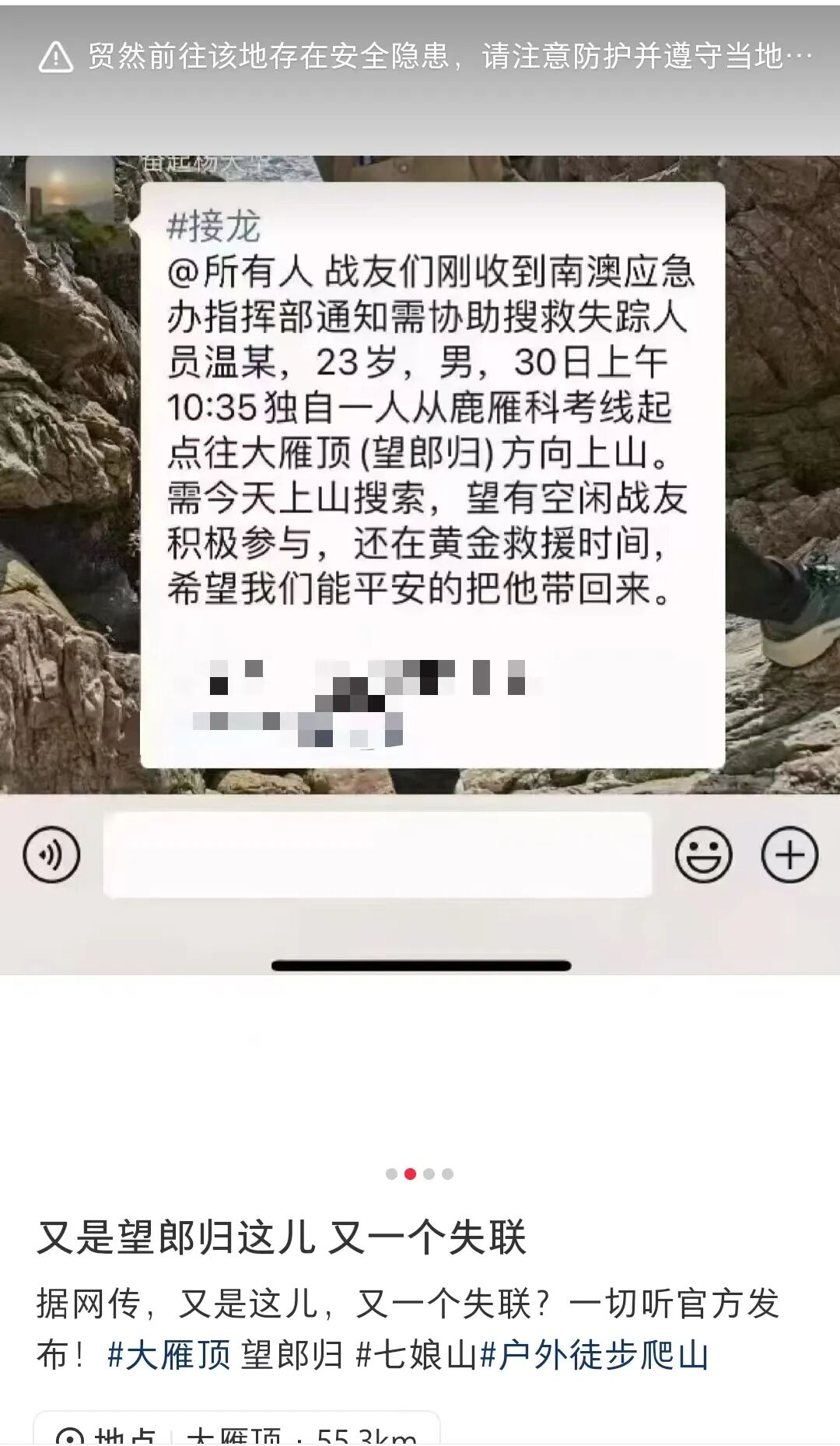 ● 近日,一男子登深圳七娘山失联,监控显示最后出现在大水坑。