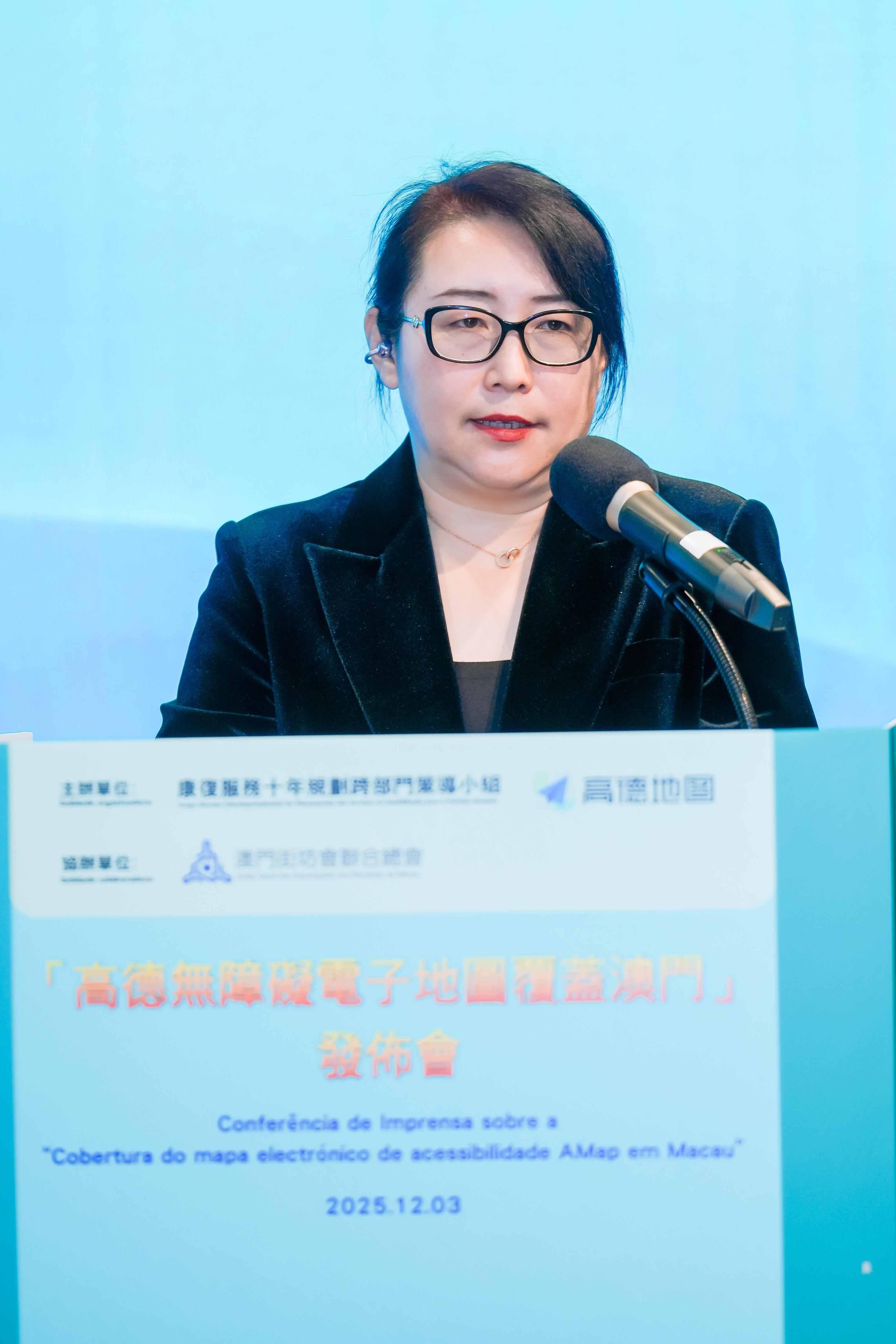 深圳新闻网2025年12月4日讯(记者 张俊达)12月3日是第34个“国际残疾人日”,高德联合澳门特区政府社会工作局在澳举行“高德无障碍电子地图覆盖澳门”发布会,宣布高德无障碍导航正式在澳门上线。这是国内首个覆盖澳门的无障碍地图导航。澳门特区政府社会文化司司长柯岚、澳门特区政府社会工作局局长韩卫、高德副总裁李艳霞出席发布活动。