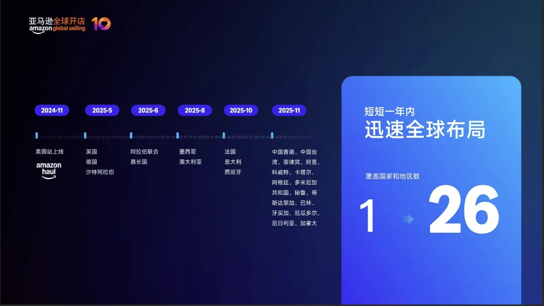 深圳新闻网2025年12月5日讯(记者 张俊达)12月4日,2025亚马逊全球开店跨境峰会举行,亚马逊全球开店业务现场发布了“下一代跨境链(Next Generation Global Selling)”战略,标志着跨境电商行业正式迈入“上线即售全球”的新纪元。这场汇聚全球电商精英的盛会,不仅展示了AI技术与跨境供应链的深度融合成果,更揭开了中国卖家“生而全球”的崭新篇章。