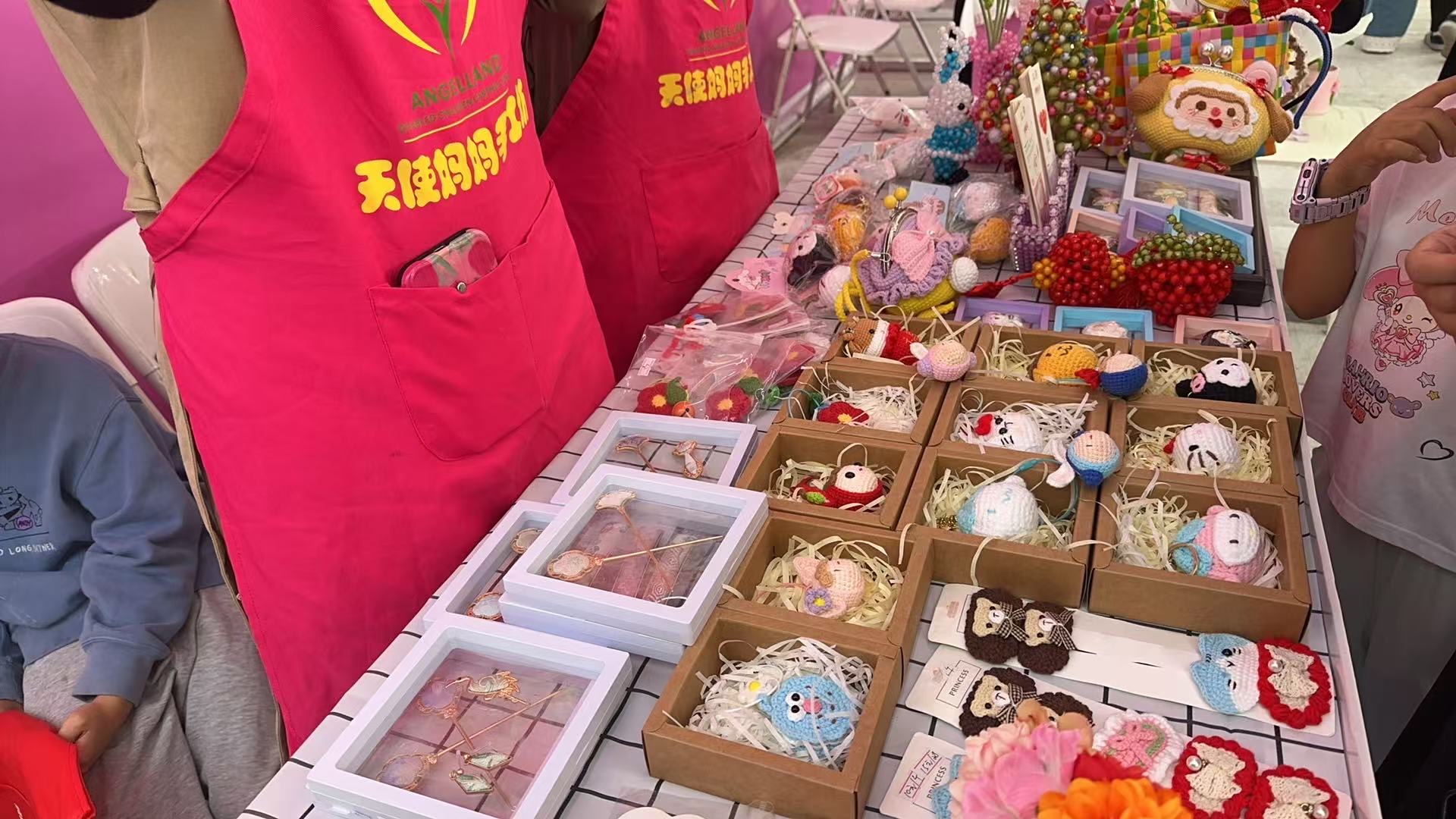 主打本土文创IP的“感瞳身受”区域,是深圳设计实力的集中展示窗口。市集从独立设计师的原创手作到市场化的创意商品,全面呈现深圳“设计之都”的实力。更有深圳手信与奈雪的茶联名打造的限定产品惊喜亮相,非遗手作专区则汇集赫哲族鱼皮画、深圳剪纸、非遗绒花等特色作品,深圳非遗艺术剪纸第四代传承人吴海凤现场演示技艺,深圳市城市职业学院珠宝学院带来了以高温掐丝景泰蓝工艺的创意制作,让市民在触摸中感受传统文化与现代设计的融合之美。