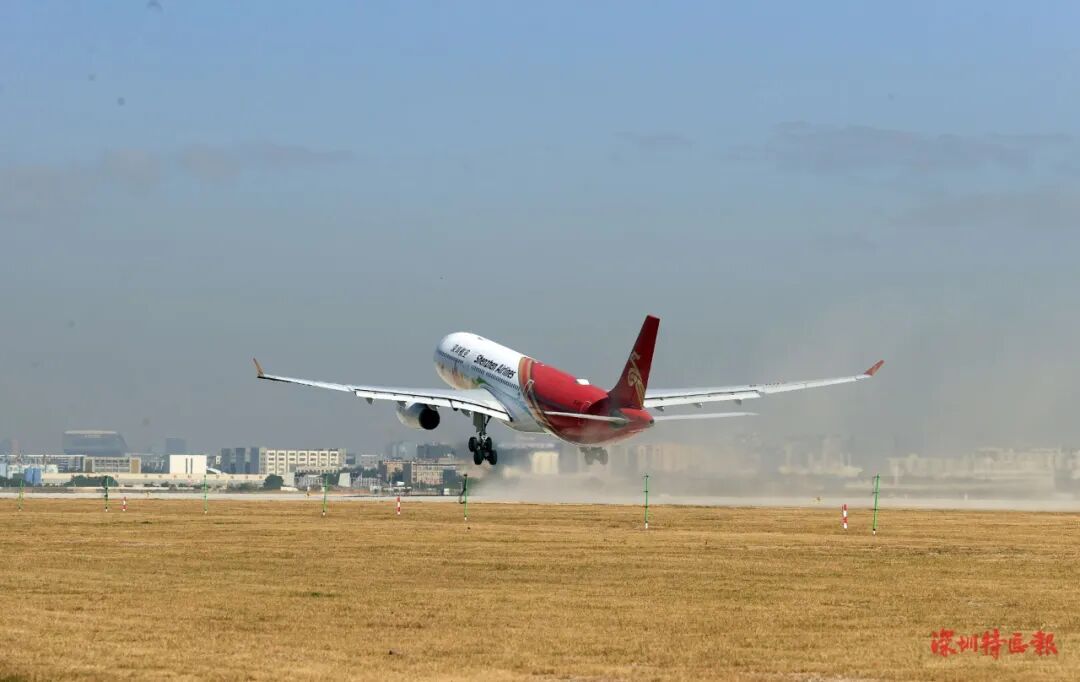 深圳航空ZH9103航班从深圳宝安国际机场第三跑道平稳起飞。