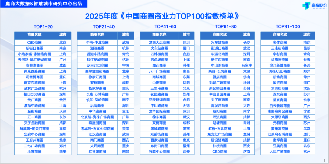 ● 2025年度《中国商圈商业力TOP100指数榜单》发布,深圳7个商圈上榜。