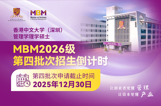 展望未来,香港中文大学(深圳)MBM项目将继续秉持初心,持续优化创新人才培养机制,深化产学研合作,以更加扎实的办学成果,为大湾区建设世界级城市群与国际科技创新中心输送更多骨干力量,进一步彰显硕士教育在服务区域发展中的重要作用。