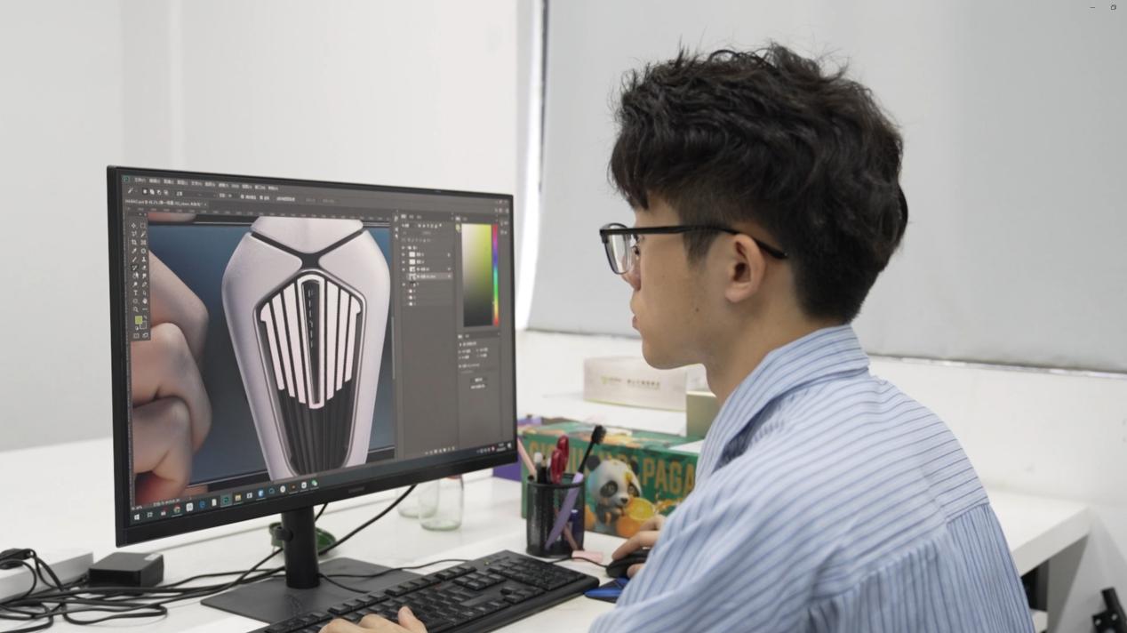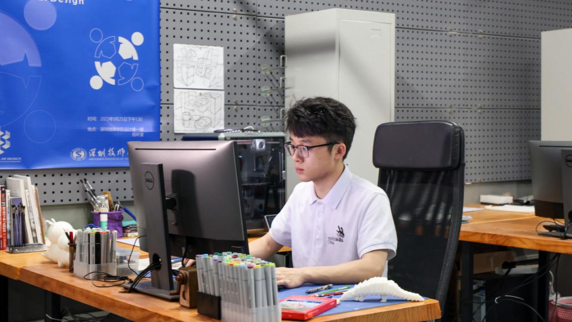 是深圳城市职业学院(深圳技师学院)的教学氛围与实践平台,让他重新找回方向。课堂上,老师结合企业真实案例讲解产品设计逻辑;实训基地里,学长学姐的设计作品被陈列展示,其中不少已实现量产、走进超市货架。“原来工业设计能让创意变成实实在在的产品,还能被大家购买使用,这种成就感是单纯画画拿奖无法比拟的。”从那时起,卓嘉鹏开始主动扎根校园学习资源:宿舍里,他是熬夜最多的人,同学们在休息时,他仍在反复练习透视结构;校企合作项目组中,他主动申请参与,跟着企业导师学习产品落地流程。