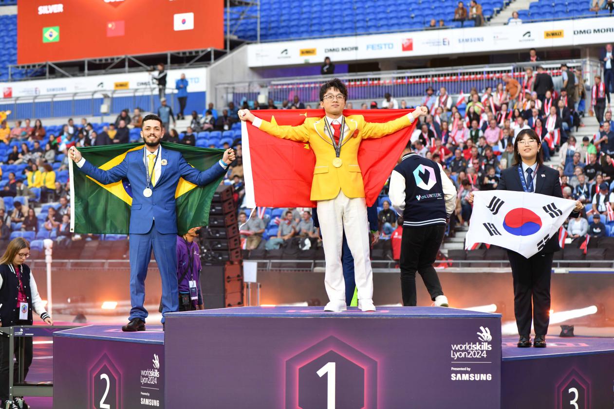 闭幕式上,披着国旗站在最高领奖台的那一刻,卓嘉鹏最先想到的,是深圳城市职业学院(深圳技师学院)的老师们:“从15岁教我画第一笔结构素描,到陪我熬过四年低谷期,没有学校的培养,就没有今天的我。”