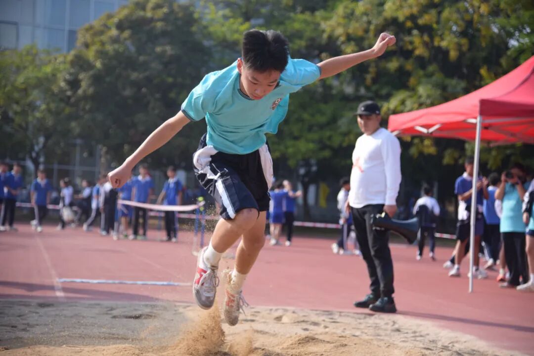 比赛正式开始后,燕山学校运动场化为拼搏与团结的竞技舞台。跑道上,运动员如离弦之箭冲向终点;田赛区,选手们以毅力诠释坚持,每一次跳跃、每一次投掷都坚定有力。接力赛中传递的默契、沙坑前的奋力一跃,无不勾勒出青春最动人的模样。赛场旁,加油呐喊声此起彼伏,挥舞的彩旗如波浪翻滚。