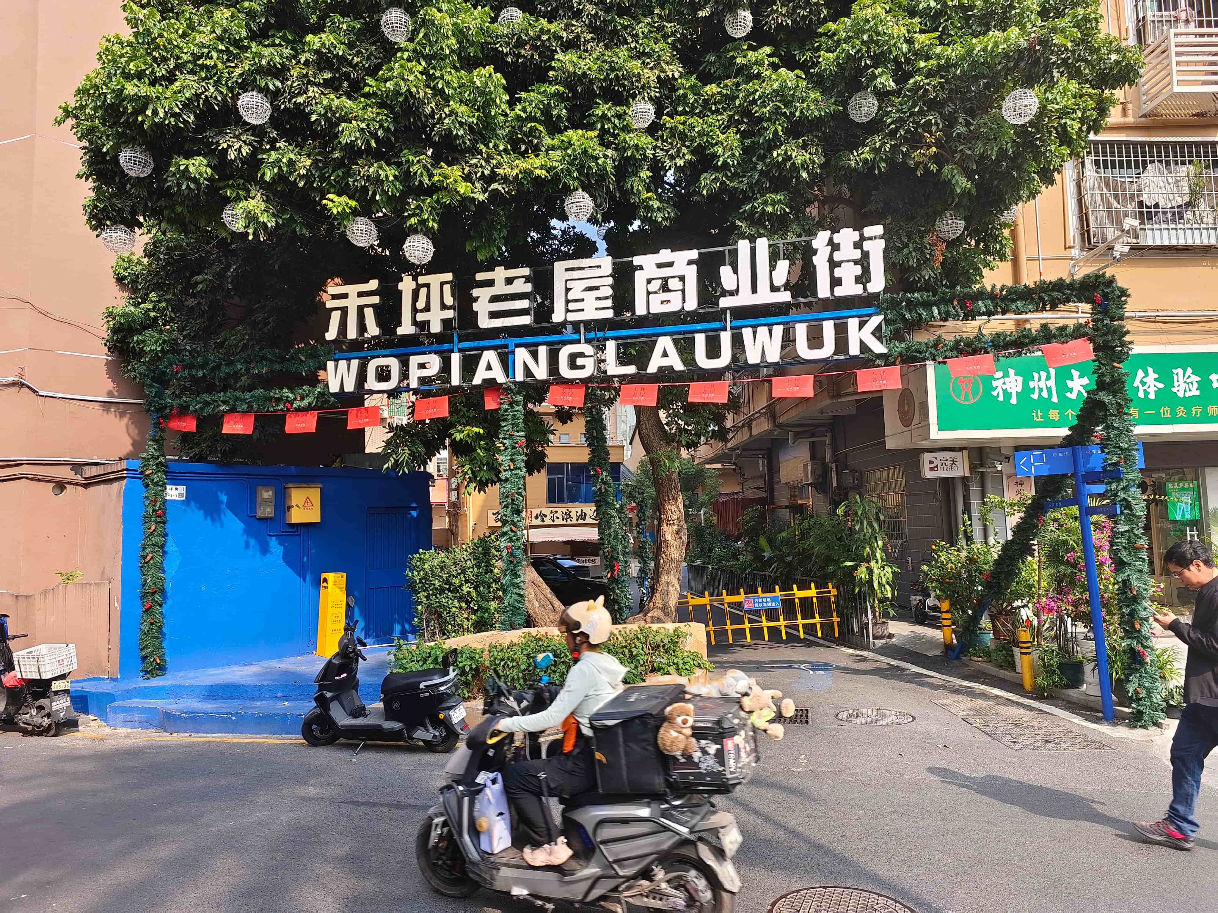 12月5日,记者根据市民指引来到禾坪老屋商业街。该商业街以活化百年客家老屋为核心,融合历史风貌与现代商业,内部聚集了一些餐饮、文化创意小店。经多方询问,记者找到了位于街区内部的公共厕所,但其入口处门已上锁,无法进入。旁边贴有相关提示,证实了其未对外开放的状态。