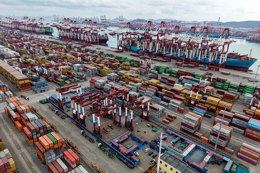 ▲山东港口畅通海陆双向物流通道 外贸航线总数达260余条。图源:CFP