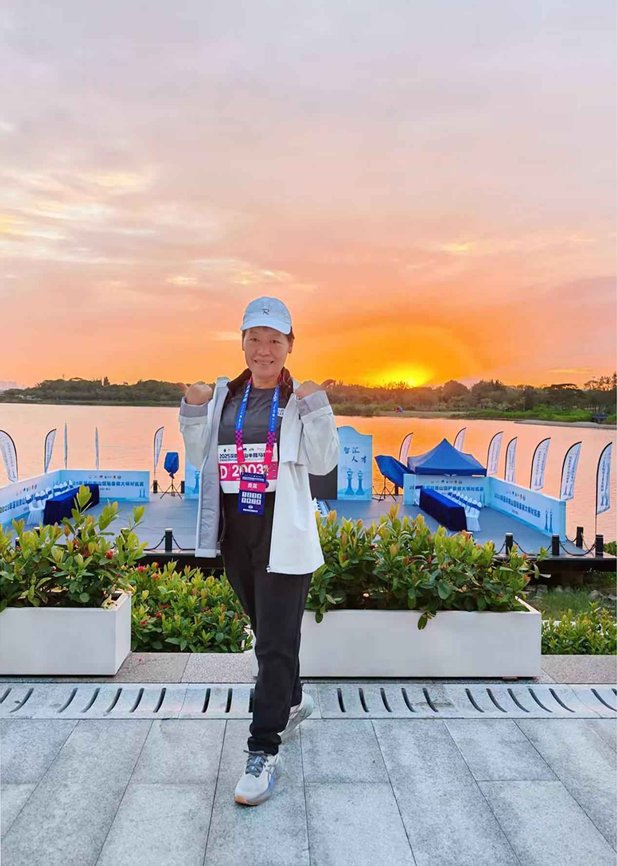 在本届南山半马中,谢军不仅是鸣枪嘉宾,更是亲身参与比赛的跑者。“体育精神是相通的,棋盘上的策略与坚韧,与马拉松赛道上的耐力与突破,本质上都是对自我极限的挑战。参与其中,是用另一种方式践行体育人的初心。”谢军表示。