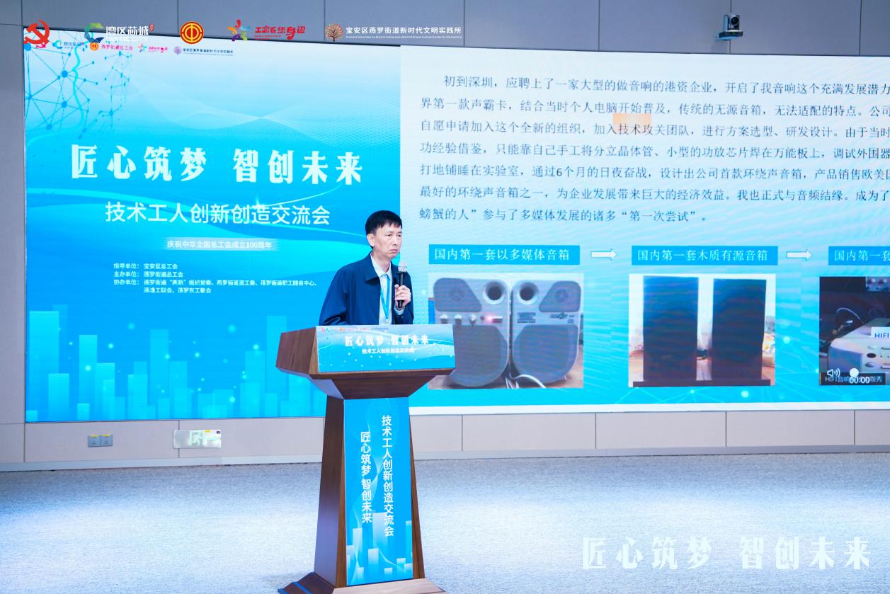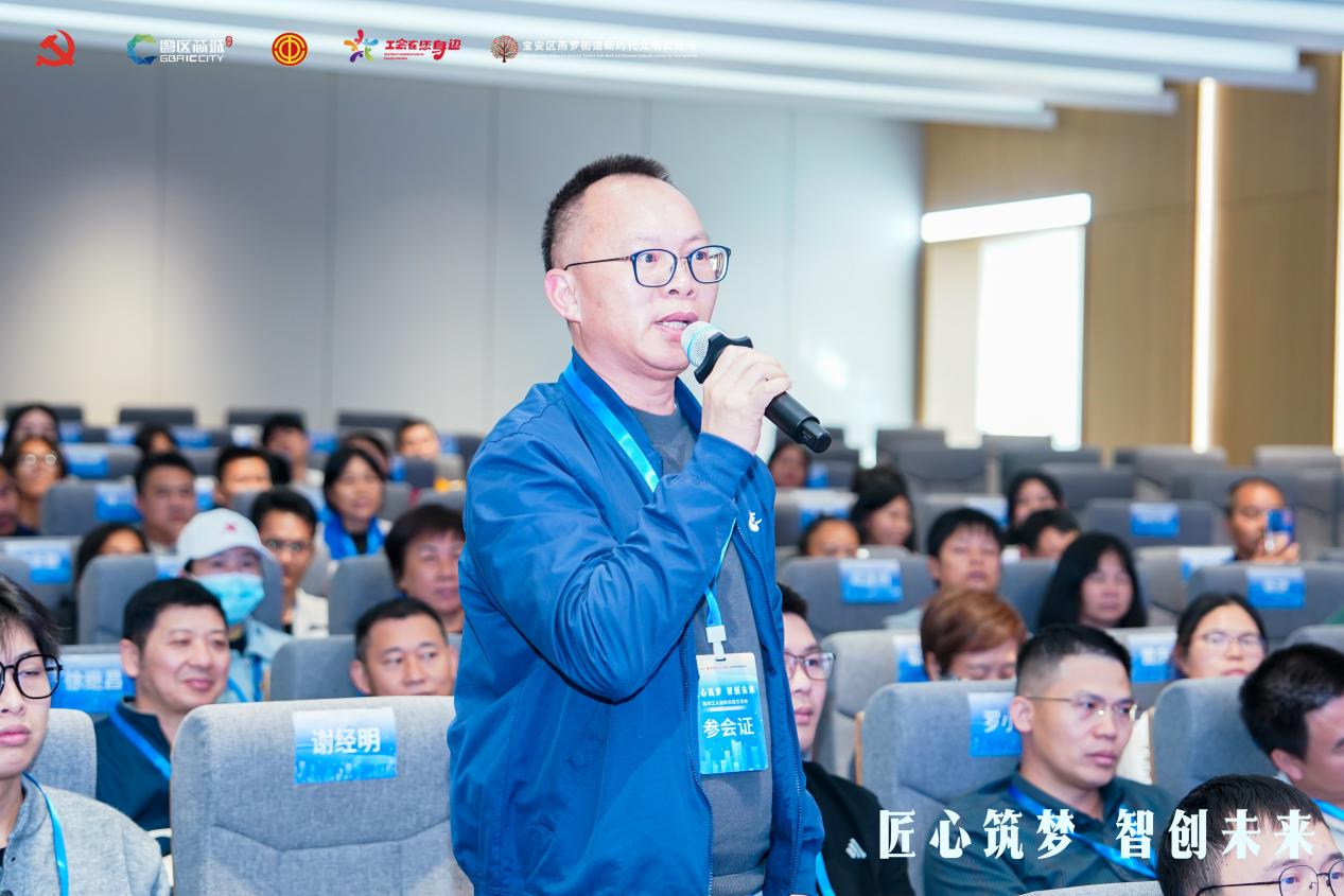 随后的经验分享环节将活动推向高潮。三位来自不同领域的“宝安工匠”先后登台,分享了他们数十年如一日精益求精、攻坚克难的动人故事与宝贵经验。深圳市三诺数字科技有限公司高级工程师许惠斌,深情回顾了从破解音频“零失真”技术难题到推动国产高端音频设备崛起的奋斗历程;来自深圳青岛啤酒朝日有限公司的自动化专家阳新宝,则从生产一线出发,分享了如何通过点滴技术改造与数字化应用,让旧设备焕发新生、实现降本增效的实践智慧;深圳市兆威机电股份有限公司博士高级工程师陈毅东,将深奥的“具身灵巧手”电源与电控关键技术娓娓道来,展现了高端精密传动领域的创新突破。