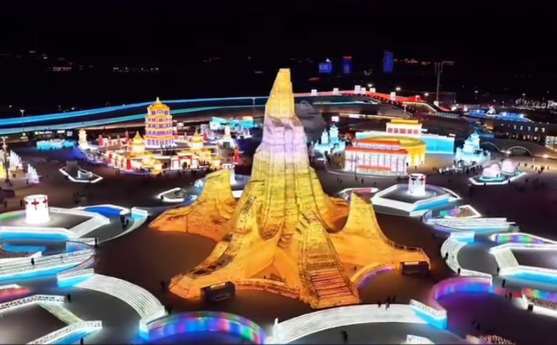 ● 近日,以深圳罗湖口岸联检大楼为原型创作的大型主题冰雕正式亮相哈尔滨冰雪大世界。