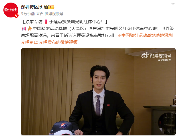 ● 光明:中国骑射运动基地(大湾区)落户深圳市光明区红花山体育中心,于适点赞。