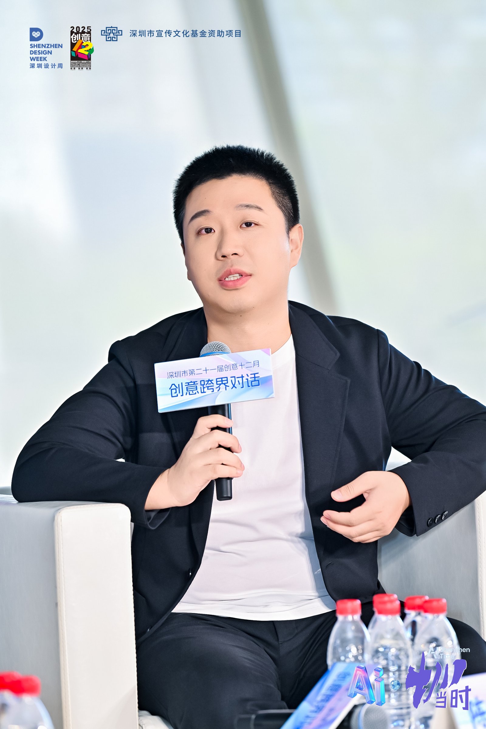 韩湛宁从自己设计深圳第26届世界大学生夏季运动会会徽以及创意十二月、深圳读书月整体设计的经验出发,表达AI只能作为工具,真正能够决定作品水平的还是创作者的视野与审美视角。