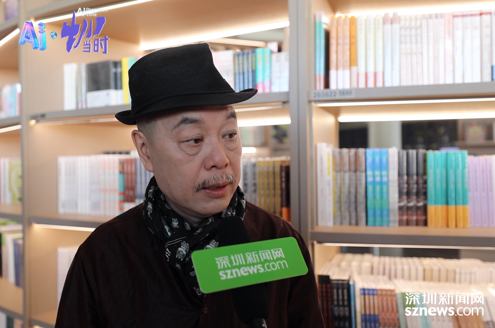 陈湘波接受深圳新闻网记者采访时表示,创作者独特的审美个性是正是AI时代最珍贵的。(张玲 摄)