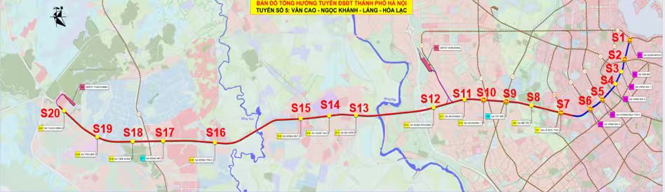 河内市城市轨道交通5号线线路全长39.58公里,设20座车站,包含地下、地面及高架段,设计最高时速120公里(地面及高架段)和90公里(地下段)。全线项目计划于2029年完工,2030年投入商业运营。