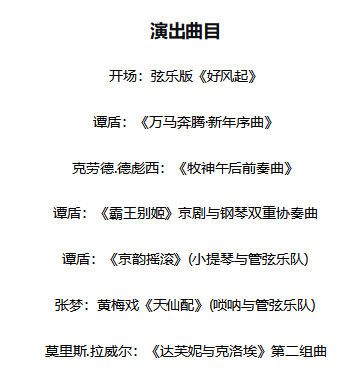 本场音乐会的曲目精心构建了一场东西方音乐的深度对话。谭盾不仅将指挥其全新创作的《万马奔腾·新年序曲》,以奔腾激越的乐音拉开马年的序幕,更带来两部深度融合戏曲元素的协奏曲力作——以钢琴与京剧双协奏曲形式重塑千古绝恋的《霸王别姬》与让小提琴在交响中融合京剧板式与摇滚节奏的《京韵摇滚》。