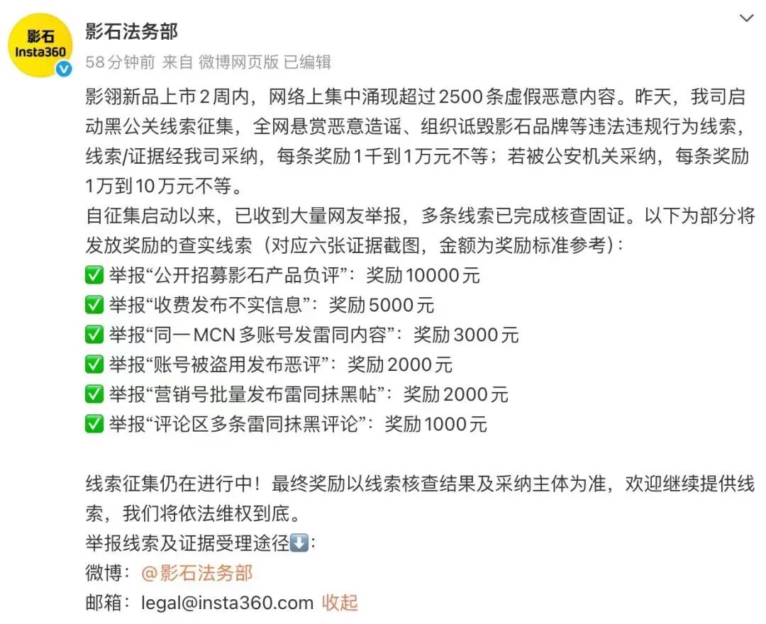 ● 近日,影石公司旗下首款全景无人机“影翎Antigravity A1”上市,网络上集中涌现恶意不实攻击信息。最新回应:已完成相关证据固定,向公安机关报案后已获正式立案。详情>>
