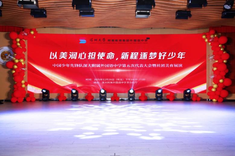 深圳新闻网2025年12月27日讯(记者 何亚南)为深入贯彻教育部《关于全面实施学校美育浸润行动的通知》要求,落实立德树人根本任务,弘扬中华美育精神,12月26日下午,深圳大学附属教育集团外国语中学在多功能厅隆重举办“以美润心担使命,新程逐梦好少年”主题活动。活动以校社美育共建签约为核心,同步融合第五次少代会与社团美育展演,构建起“仪式+实践+展示”的多维美育场景,为打造“时时、处处、人人”的美育生态注入鲜活力量。