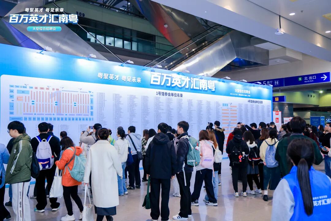 作为广东省“百万英才汇南粤”行动计划的年末压轴大戏,活动不仅汇聚了超1800家重点用人单位、释放6.5万个优质岗位,更以“全学历覆盖、全产业聚焦、全区域联动”的鲜明特色,成为广东经济实力与人才吸引力的生动注脚。据统计,招聘会首日即吸引了来自境内外1700多所高校超12万名学生参加,现场人头攒动、热度爆棚。