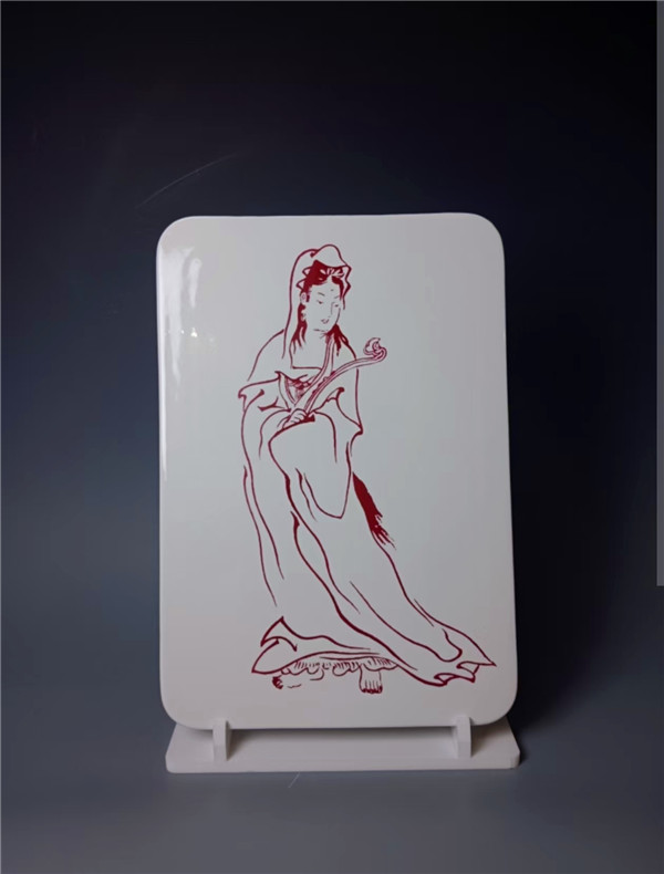 潘文平的刻瓷作品题材丰富,涵盖人物、书法、篆刻纹样等多个类别,每一件作品都凝聚着他对刀法、布局的精妙考量,兼具艺术审美与实用价值。