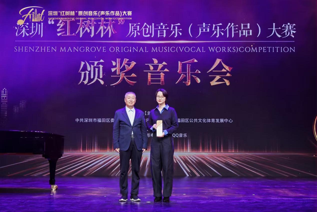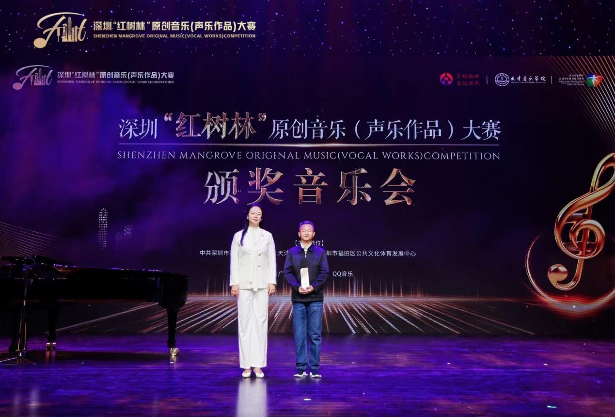 此外,经人气投票评选,《望过星海》《一万种飞翔》《心跳的福田》《深深的把你牵挂》《木棉花开鹏城夜》5首作品荣获“最佳人气奖”。著名作曲家印青老师为大赛献上自己的原创作品《爱音乐的人》,获得评委会特别贡献奖。