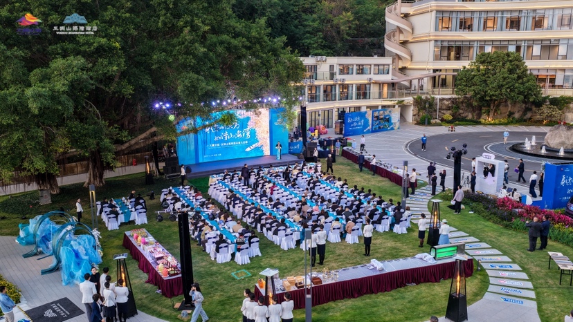 启动仪式上,悠扬乐声与山海景致相映成趣,现场氛围热烈庄重。大鹏投控领导致辞时表示,酒店的启幕是新区文旅产业布局的关键落子,将为区域旅游品质升级、服务能级提升注入全新活力;深圳五洲国际酒店管理集团负责人分享了打造一流酒店管理品牌的愿景,承诺以专业运营与精细化服务,呈现“观山阅海、诗意旅居”的高品质体验。大鹏文旅总经理表示,作为大鹏文旅公司“十五五”规划重点项目,山海湾酒店不只是一家酒店,它更是一个文旅综合体,承载了文旅公司在酒店服务、海洋文旅、自然研学和品牌文创等方面的战略规划,也凝聚了大鹏文旅对新区文旅产业发展的创想。