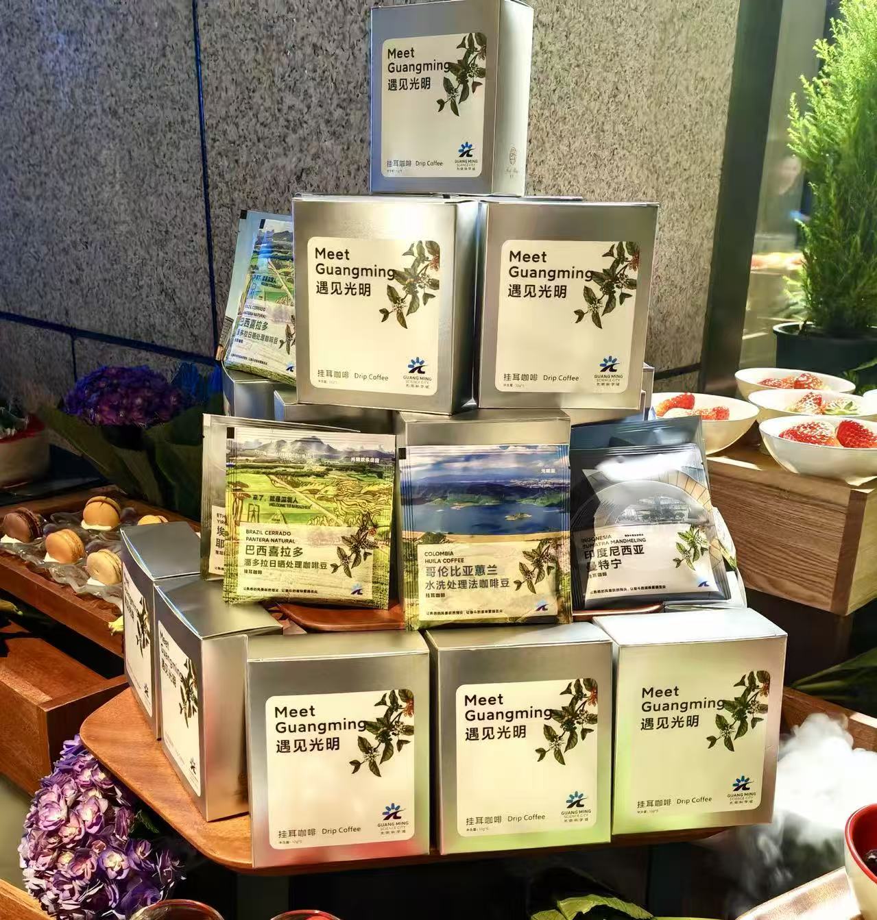 “逐梦光明”咖啡的灵感源于光明的自然与人文地标,包装上勾勒的光明湖、虹桥公园、光明文化艺术中心、光明欢乐田园、光明金融科技大厦等场景,将城市风景化为指尖可触的艺术。而咖啡本身的风味设计更见巧思,五款精选豆分别对应五大场景特色,精选咖啡豆分别有埃塞俄比亚耶加雪菲、巴西喜拉多潘多拉日晒处理咖啡豆、哥伦比亚蕙兰水洗处理法咖啡豆、印度尼西亚曼特宁、云南厌氧日晒咖啡豆。每一款风味都是一段光明故事的味觉注脚,让市民在品鉴中重温城市记忆。