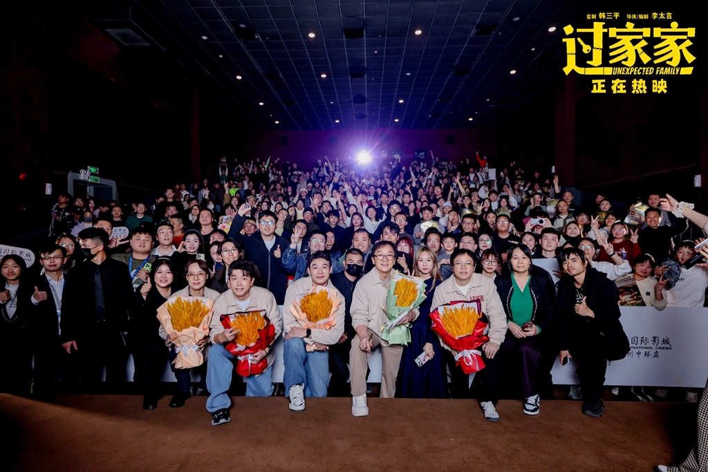 深圳新闻网2026年1月3日讯(记者 张玲)1月2日,合家欢电影《过家家》全国公映第二天,“有爱相伴”全国路演在广州收官。导演、编剧李太言,领衔主演成龙,主演潘斌龙、李萍,以及影片中“任壮壮”的扮演者黄炎齐聚珠江之畔,先后走进5家影城与观众深度互动。