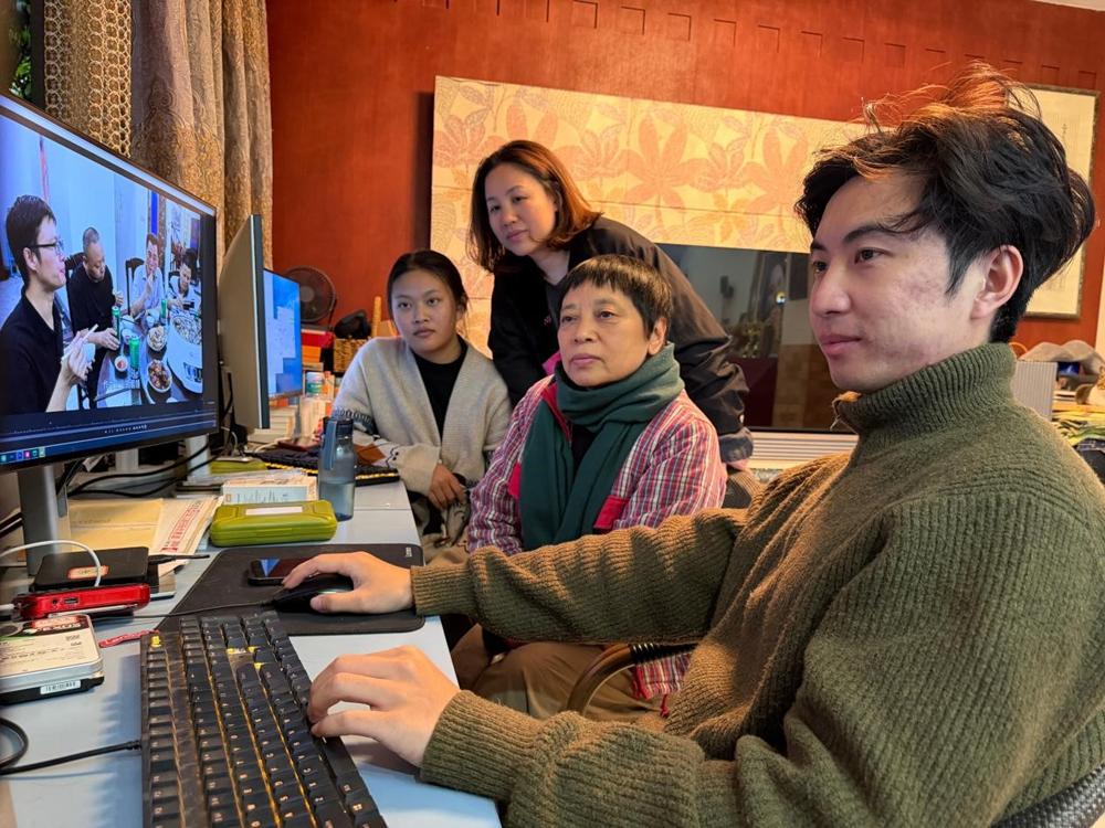 ▲编导余承莹(左一)剪辑师周全(左二)