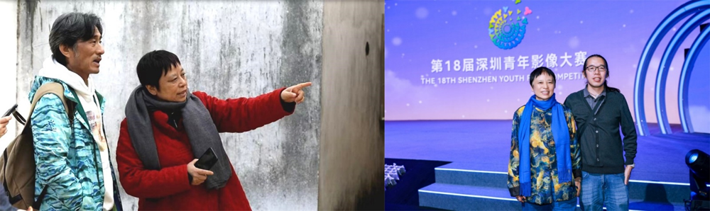 导演李亚威与摄影师刘庆纲(左),导演李亚威与设计师彭庆林(右)。