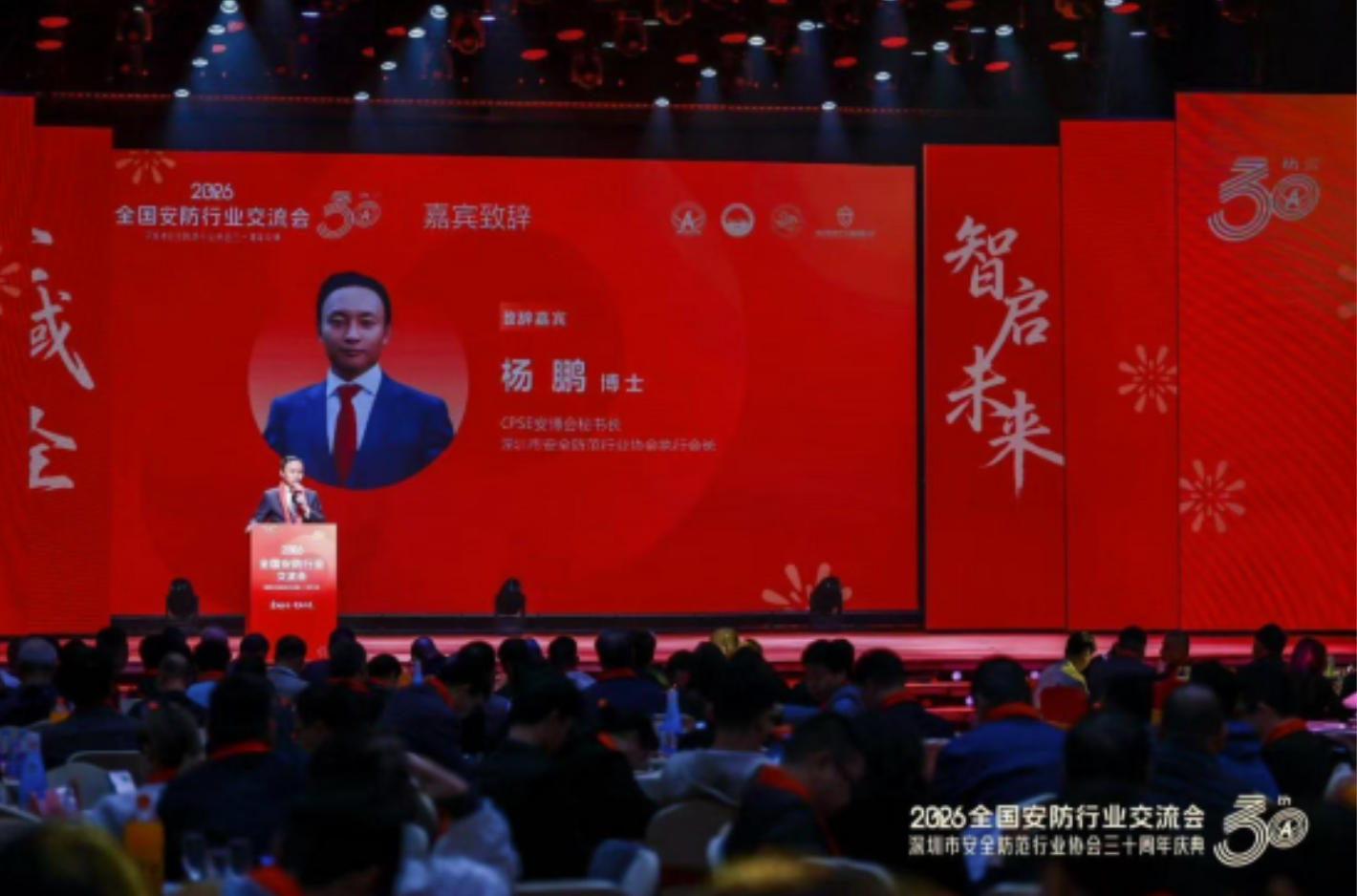 深圳新闻网2026年1月9日讯(记者 张俊达)1月7日,“全域安全·智启未来”2026全国安防行业交流会在深圳世界之窗·凯撒宫举行。这场由深圳市安全防范行业协会(深安协)主办、汇聚全国安防精英的盛会,既是行业前沿技术的展示平台,更是深安协成立三十周年的里程碑庆典。活动以无人机光影秀“致敬三十年”震撼开场,“30”“安防”等元素动态演绎,勾勒出中国安防产业从追赶到领跑的时代画卷。