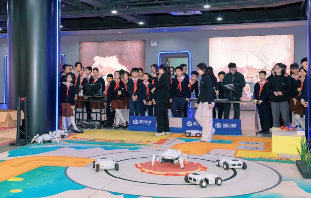 基地创新性地将国防教育与科技教育相融合,开发了包含无人机编队操控、空陆协同作战等多个主题场景的实践课程体系。所有教学设备、控制系统及课程内容均为高巨创新自主研发,确保教育内容的前沿性和安全性。作为“工业强国青少年培训活动基地”“中国航空学会科普教育基地”“中国民航科普教育基地”,高巨创新低空科教文旅融合示范基地与市、区和街道关工委合作开展公益研学项目,累计接待中小学生数百人次。
