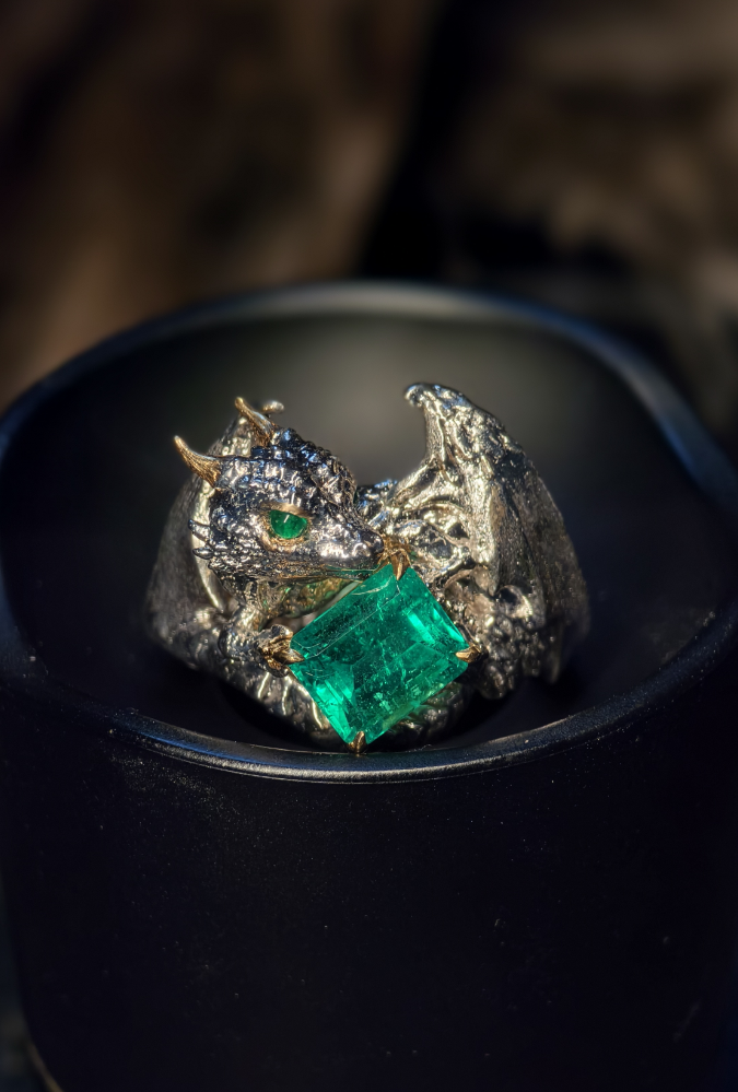 小神龙祖母绿18K金真分色戒指。