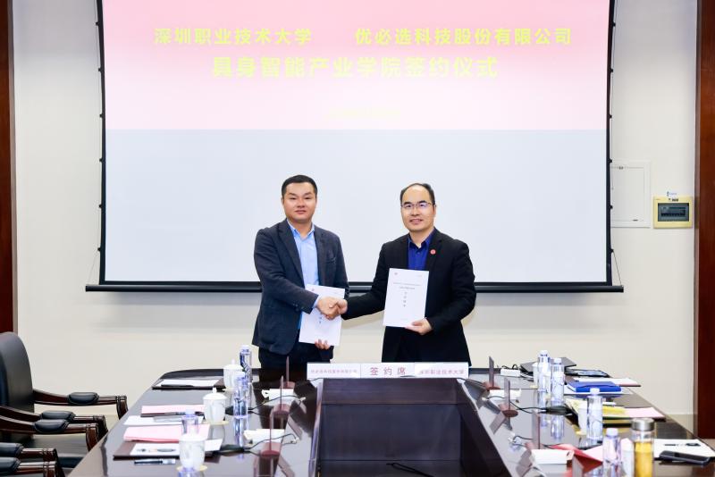 深圳新闻网2026年1月12日讯(记者 何亚南 通讯员 李佩东 张雷)近日,深圳职业技术大学(以下简称“深职大”)与深圳市优必选科技股份有限公司(以下简称“优必选”)共建具身智能产业学院签约暨揭牌仪式在深职大西丽校区举行。这标志着,全国职业本科院校首家“具身智能产业学院”落地深职大。深职大党委副书记、校长许建领,优必选科技高级副总裁、教育与消费者事业群总裁钟永等领导嘉宾出席活动。仪式由人工智能学院副院长(主持工作)池瑞楠主持。