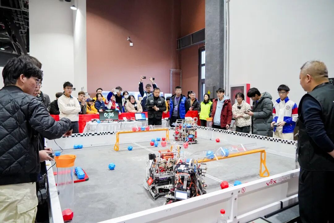 在本次大赛中,深技大附中赛队出色完成全金属机器人操控、复杂任务挑战、临场战术调整等多重考验,从机器人搭建调试到编程优化,从团队战术推演到突发故障处理,全程由学生自主完成,完美践行了VEX“以学生为中心”的核心理念,比赛中锤炼的创新思维、协作能力与问题解决能力,正是深技大附中始终秉承的“求真求实、动脑动手”的教育理念与科技教育的核心培养目标。